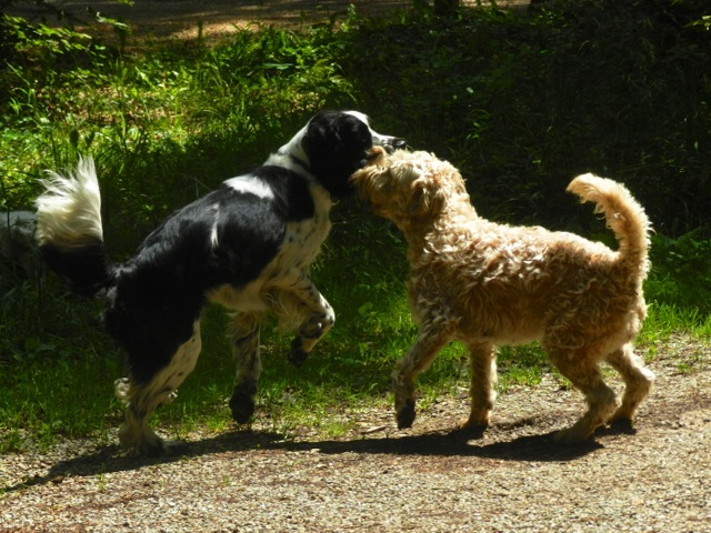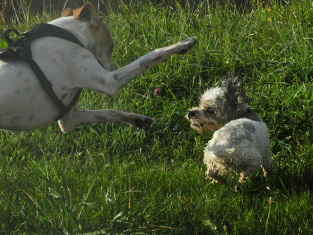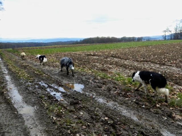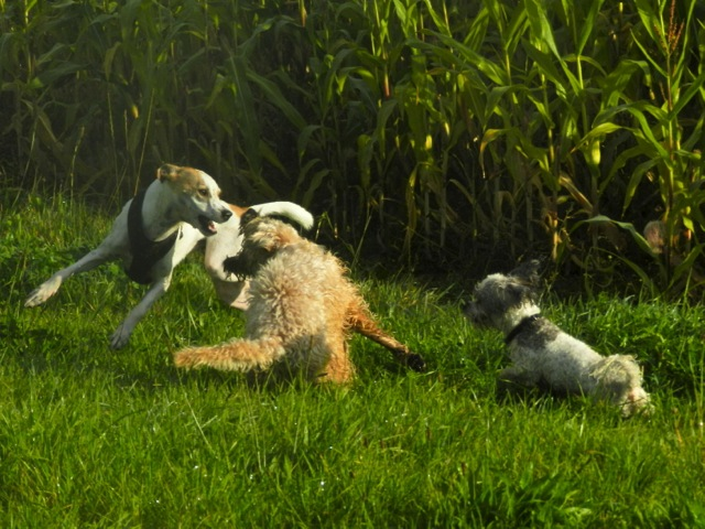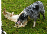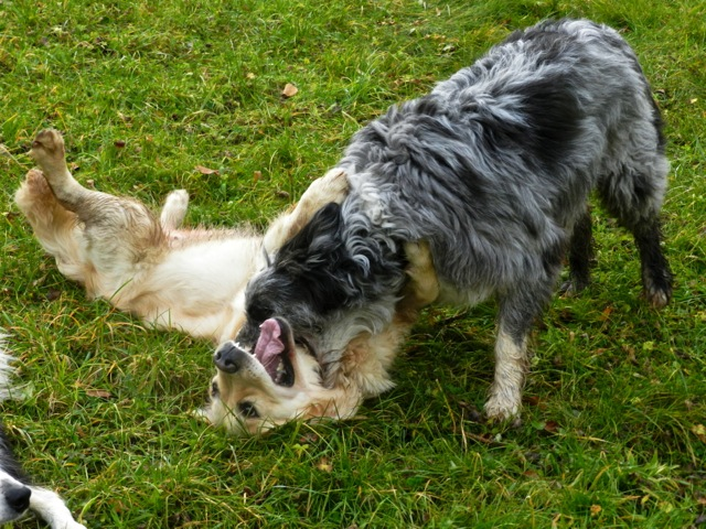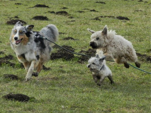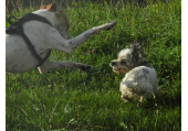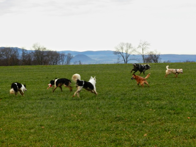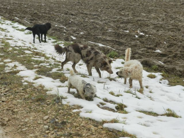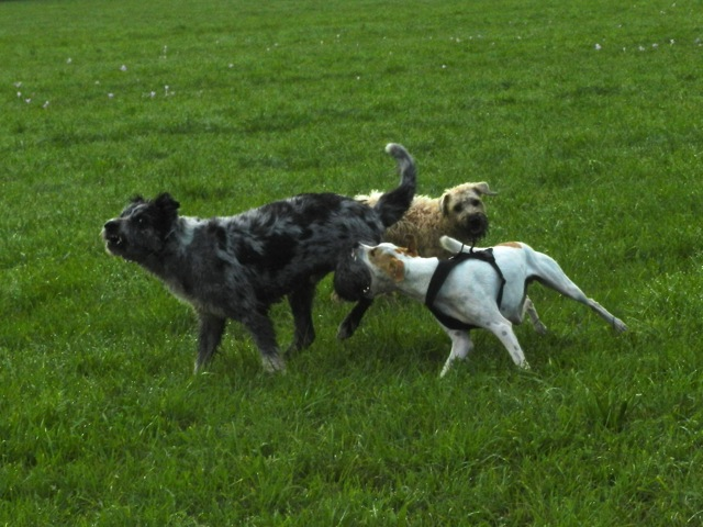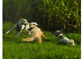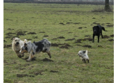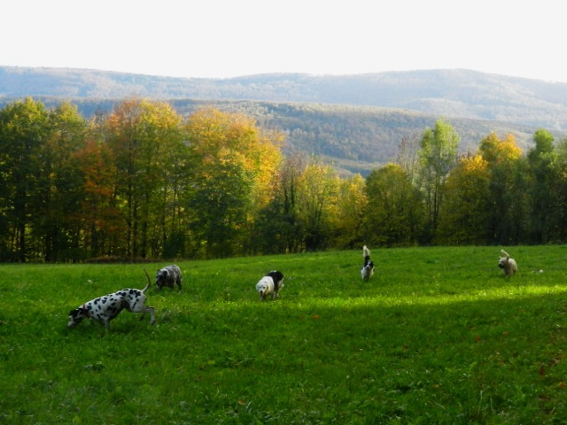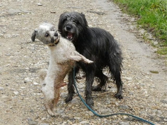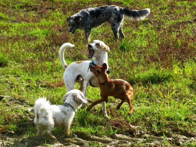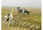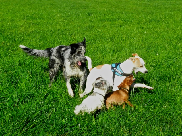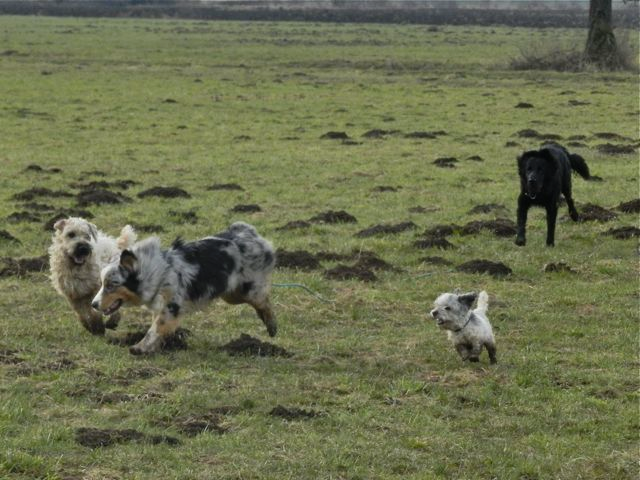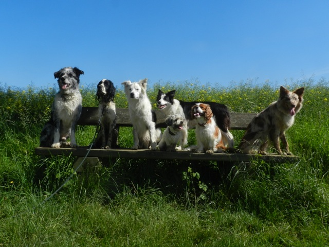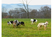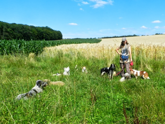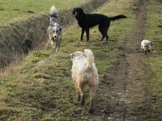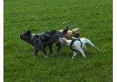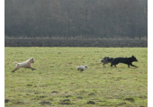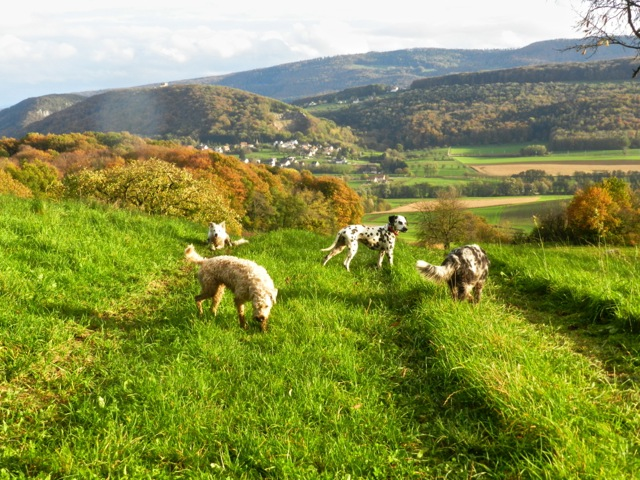 Meine Rudel bestehen meist aus 4-6 Hunden. In Einzelfällen habe ich auch mal 7 Hunde dabei, dann sind das aber immer Hunde, die ich sehr gut kenne und wo mindestens die Hälfte davon absolut verlässlich ist. Das Wichtigste für ein Rudel ist Ruhe. Und in meinen Rudeln herrscht die. Kommen neue Hunde rein, werden diese sorgfältig ausgesucht und so sind die Rudel grundsätzlich bei mir sehr harmonisch. Natürlich gibt es, gerade bei Junghunden, Spiel-/Renneinheiten. Aber immer wieder kehrt Ruhe ein. Zuverlässige Hunde dürfen frei laufen, in übersichtlichem Gelände leine ich auch mal alle ab, damit sie etwas toben können. Meist habe ich aber, gerade im Wald, 1-2 Hunde am Bauchgurt.