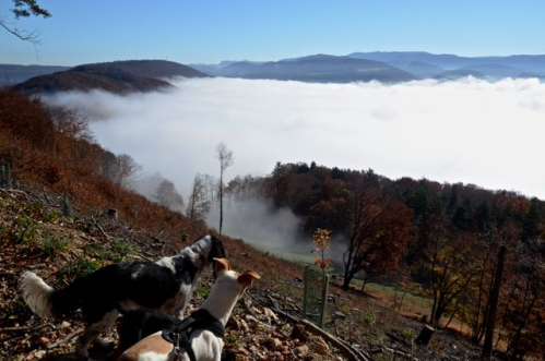 Und ja. Wenn ich wieder in einem zauberhaften Wald unterwegs bin, der Morgennebel von der Sonne durchschienen wird... Wenn wir über dem Nebel aus der Sonne auf das Tal hinab schauen oder einfach durch den goldenen Herbstwald stapfen -- DOCH! Es ist ein Traumjob. Ein anstrengender Traumjob mit sehr viel Verantwortung. Und ich bin sehr dankbar, dass ich ihn machen darf. Und ich danke den Hunden, dass sie mich so treu begleiten und wir soviel Spass zusammen haben.