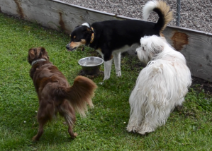 Klar war: Lemmy sollten erst (fast) alle Hunde vorgestellt werden, damit er seine Arbeit als Zentralhund zeigen kann, danach kann man kombinieren. Spontan, wie es passt und wie die Teilnehmer es wünschen.