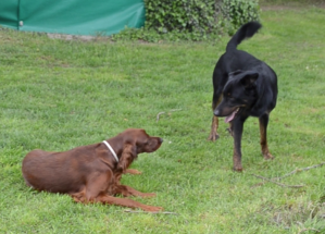 Wieviel Erfolg sie hatte, zeigt das obere Bild. Klare Grenze, klare Ansage. MEIN AST. Als sie dann ruhiger wurde, durfte sie ihn übrigens auch haben. Lemmy interessierte sich dann nicht mehr für den Ast.