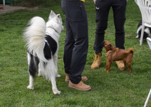 Der nächste Kandidat war Baloo. Ein Border Mix, kastr. Rüde, hinterer Kundschafter aber ein sehr freundlicher und souveräner. Die beiden fanden sich ganz toll und Baloo bezirzte Lemmy und versuchte ihn zu motovieren, ihm zu folgen. War wirklich süss zu sehen, wie Baloo Lemmy als Qualitätstester umgarnte und rückwärts durch die Gegend hüpfte.